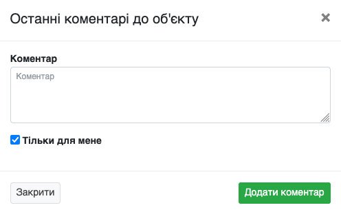 У системі ЛігаПро є можливість залишати коментарі до об'єктів. Щоб залишити коментар, перейдіть до списку об'єктів і знайдіть потрібний об'єкт, після чого натисніть на іконку коментаря (Рис. 1790, Рис. 1791).