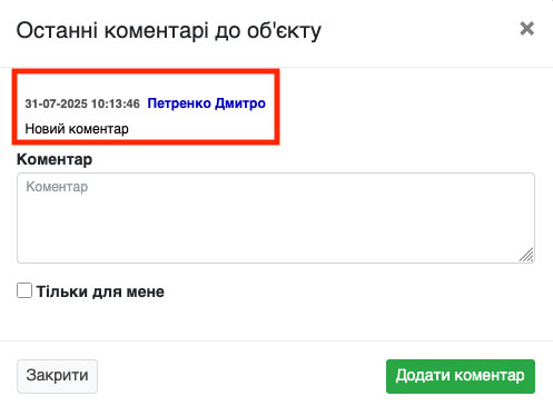 ВАЖЛИВО!Коментар із позначкою «Тільки для мене» буде видно лише Вам та адміністратору системи або Вашому керівнику.