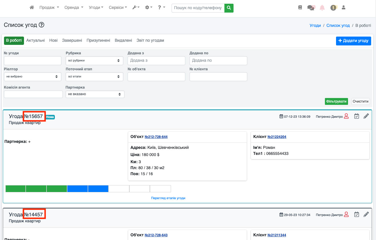 Код угоди можна переглядати і в списку, і в редагуванні, і в журналі дій (Рис. 1815).