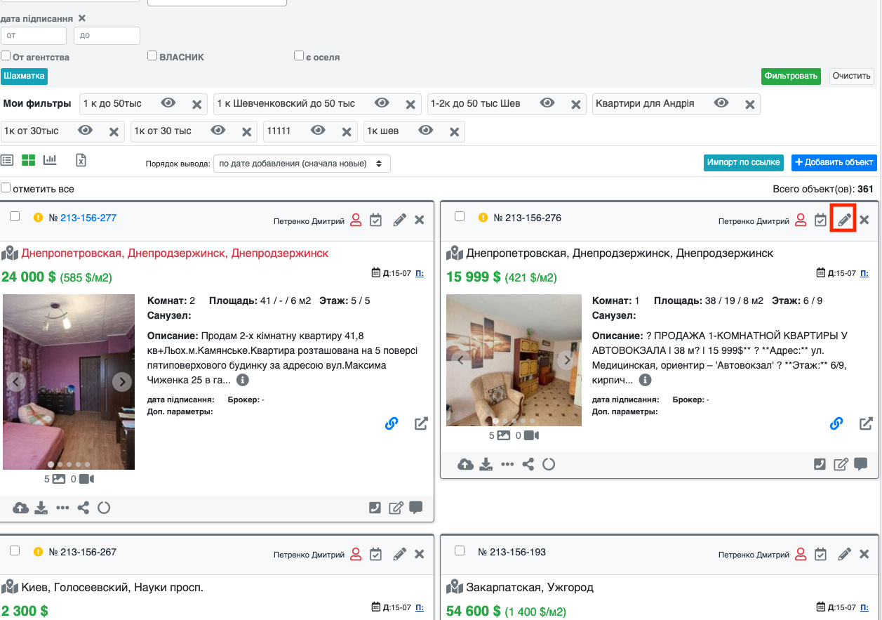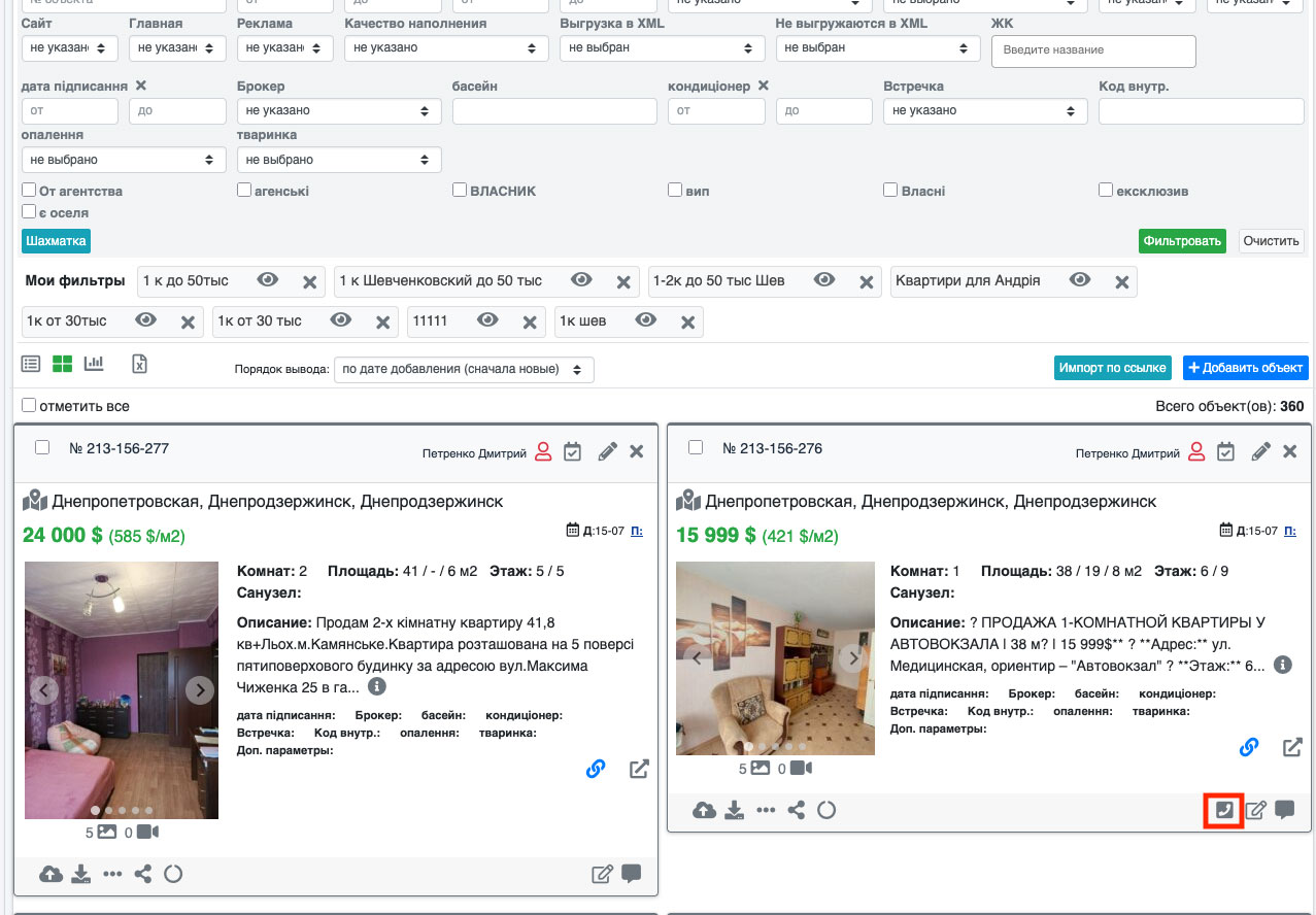 Ви можете телефонувати прямо зі списку об'єктів. Просто натисніть на іконку власника (Рис. 1826, Рис. 1827).