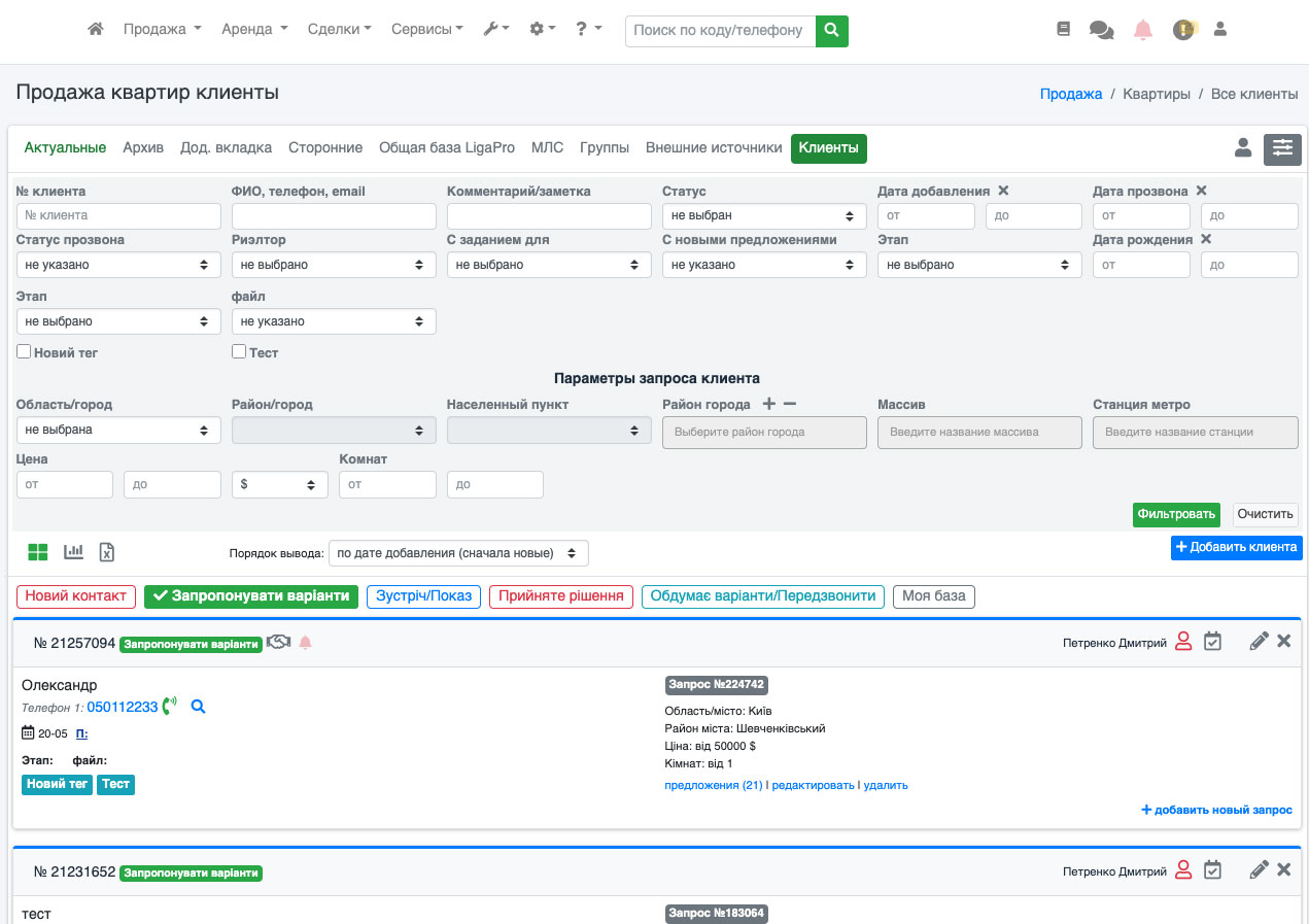 Дзвінки із CRM LigaPro зі списку клієнтів