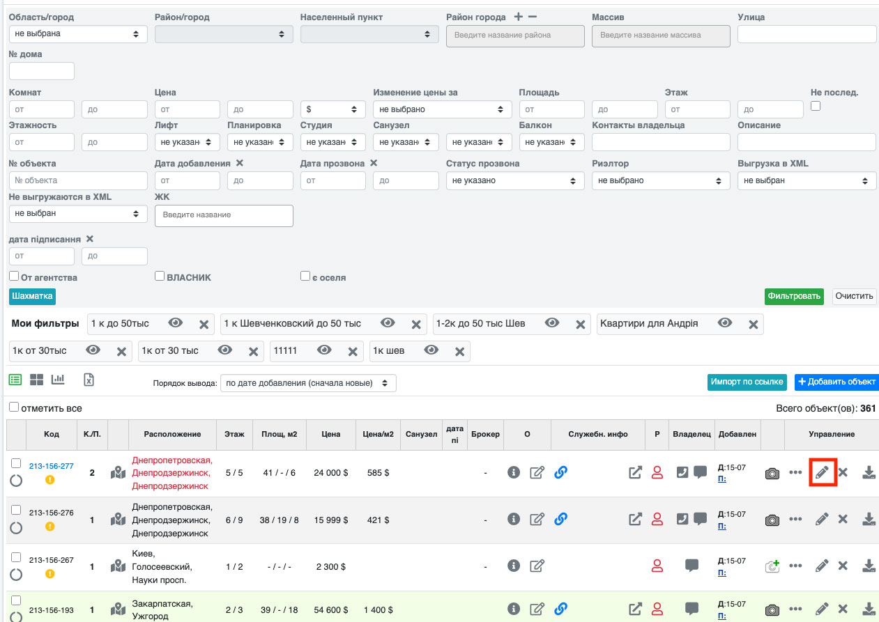 Перейдіть у форму редагування об'єкта та у службовій інформації натисніть на іконку «зелена трубка» біля потрібного номера (Рис. 1832).