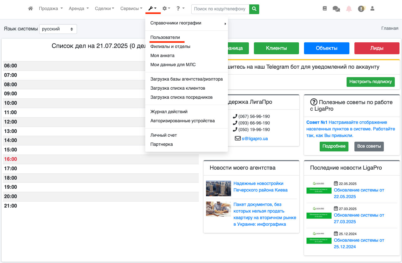 Спочатку потрібно дати право користувачеві закривати об'єкт. Для цього перейдіть в пункт 'Управління - Користувачі' (Рис. 1859).