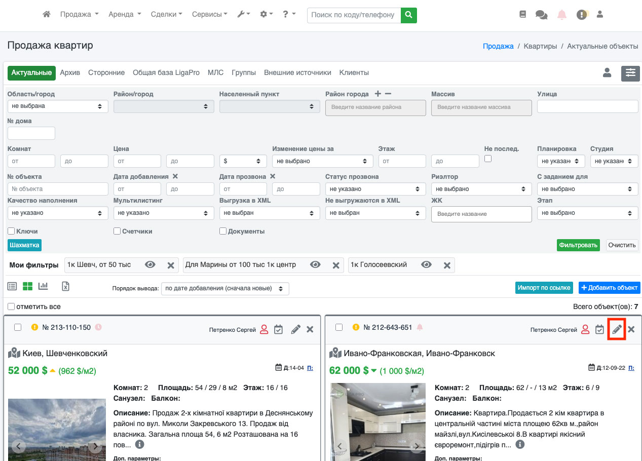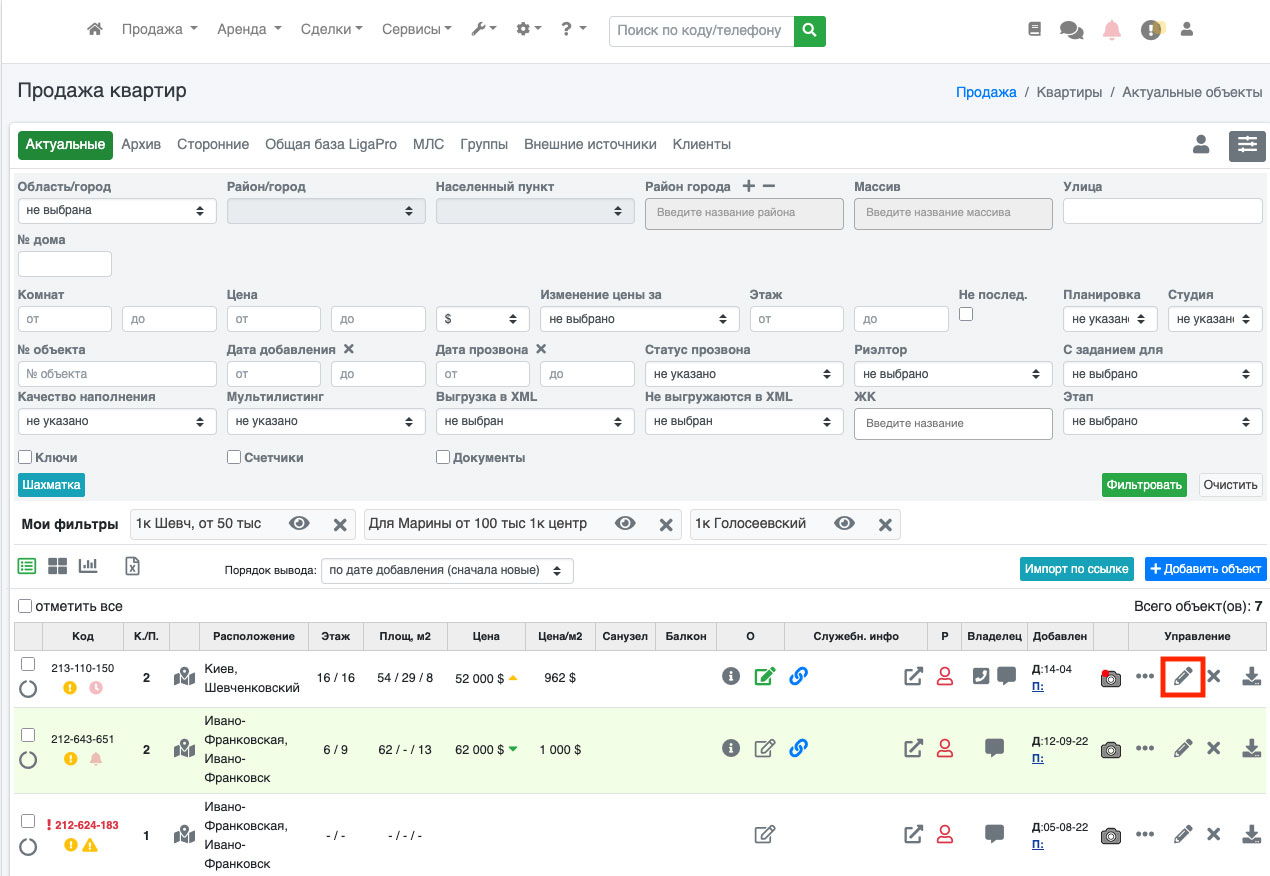 У системі ЛігаПро існує функція 'Закриття об'єкта'. За умовчанням згідно прав користувача існує звичайний користувач, який може додавати об'єкти та переглядати об'єкти інших користувачів, але без перегляду контактів. Але іноді система агентств нерухомості побудована так, що всі користувачі мають права та переглядати контакти власника та редагувати чужі об'єкти. При цьому все ж таки існує необхідність обмежити такий перегляд і редагування для окремих квартир (наприклад ексклюзивів). Саме в такому випадку Вам потрібно активувати опцію «Закрити об'єкт».
