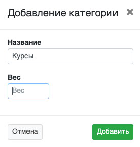 У Вас відкриється діалогове вікно, де Ви можете вказати назву категорії та задати вагу, після чого натисніть кнопку «Додати» (Рис. 288).