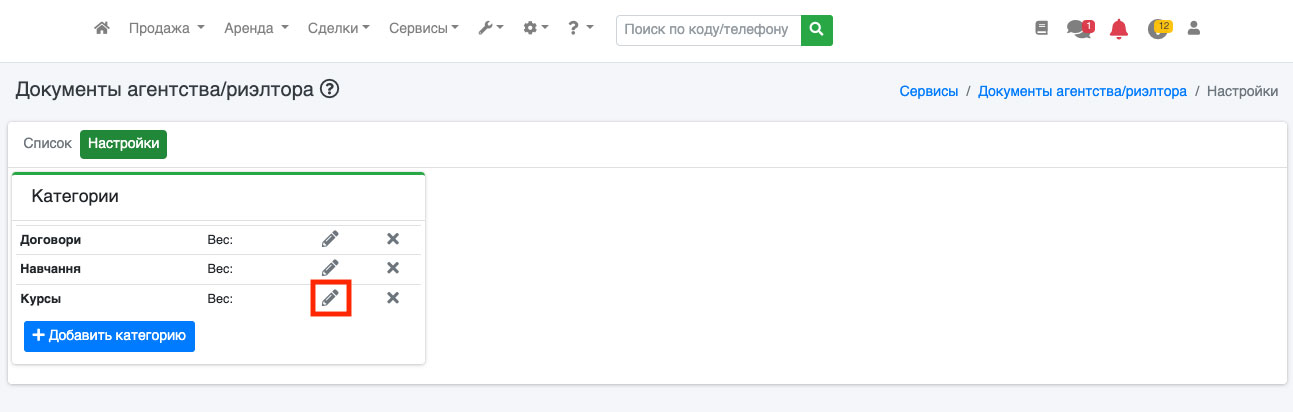 Щоб відредагувати категорію, натисніть на іконку «олівець» (Рис. 292).