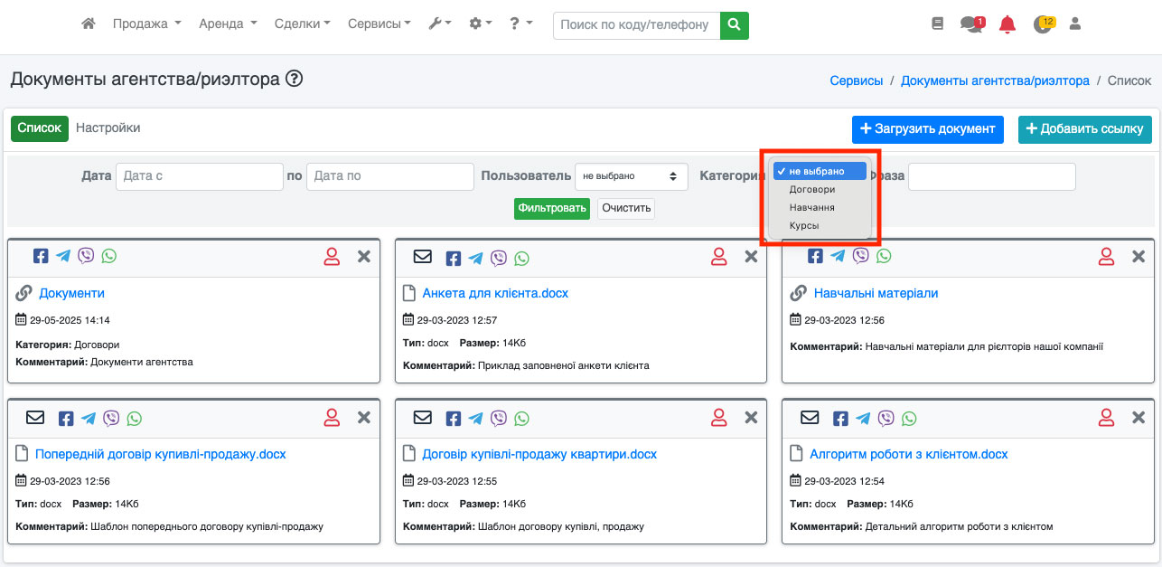 Також Ви можете фільтрувати базу Ваших документів за категоріями (Рис. 295).