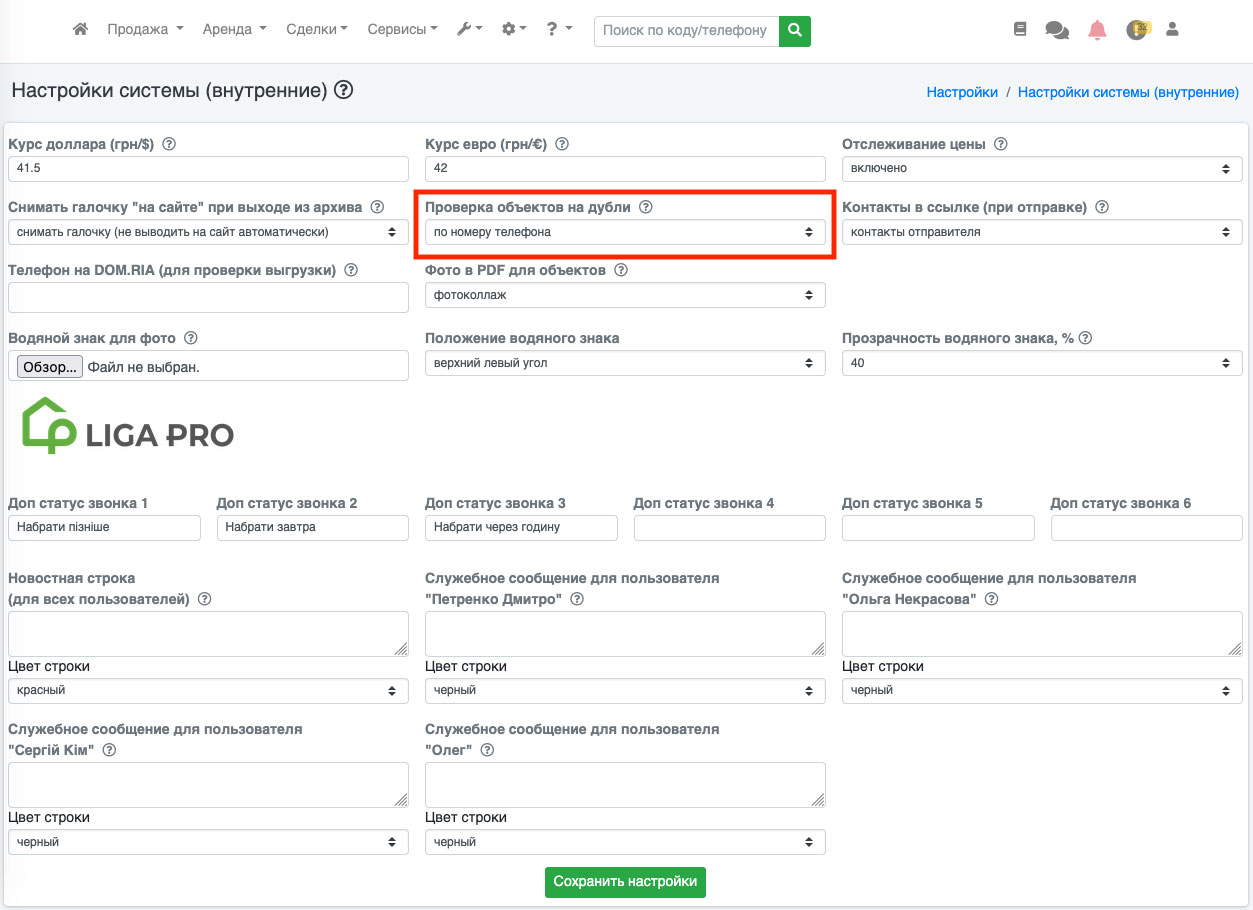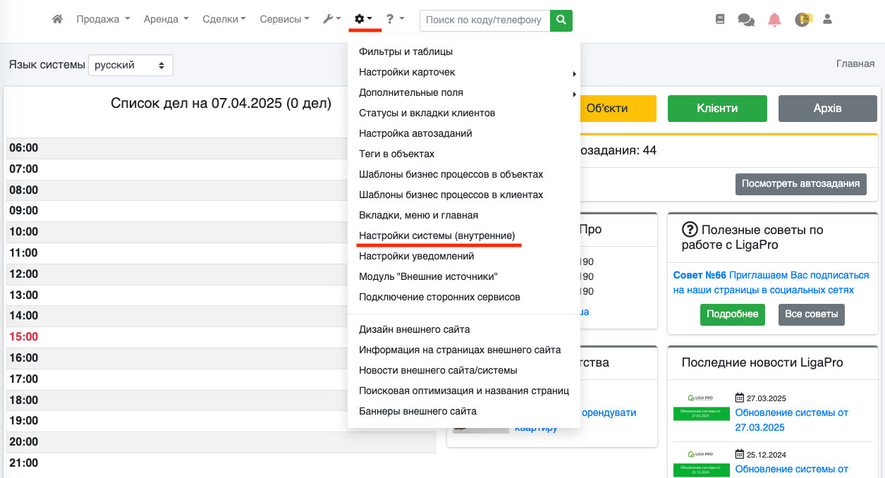 Этот пункт настроек доступен только администратору системы (пользователь который был создан при регистрации в LigaPro), а также администратору, которому был дан доступ для редактирования этого раздела.