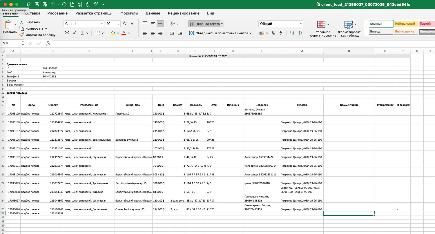 Всі об'єкти, які не підходять клієнту, Ви можете видалити, натиснувши на червоний хрестик навпроти об'єкта (сам об'єкт не видаляється, він буде видалений тільки з добірки під клієнта) (Рис. 426).