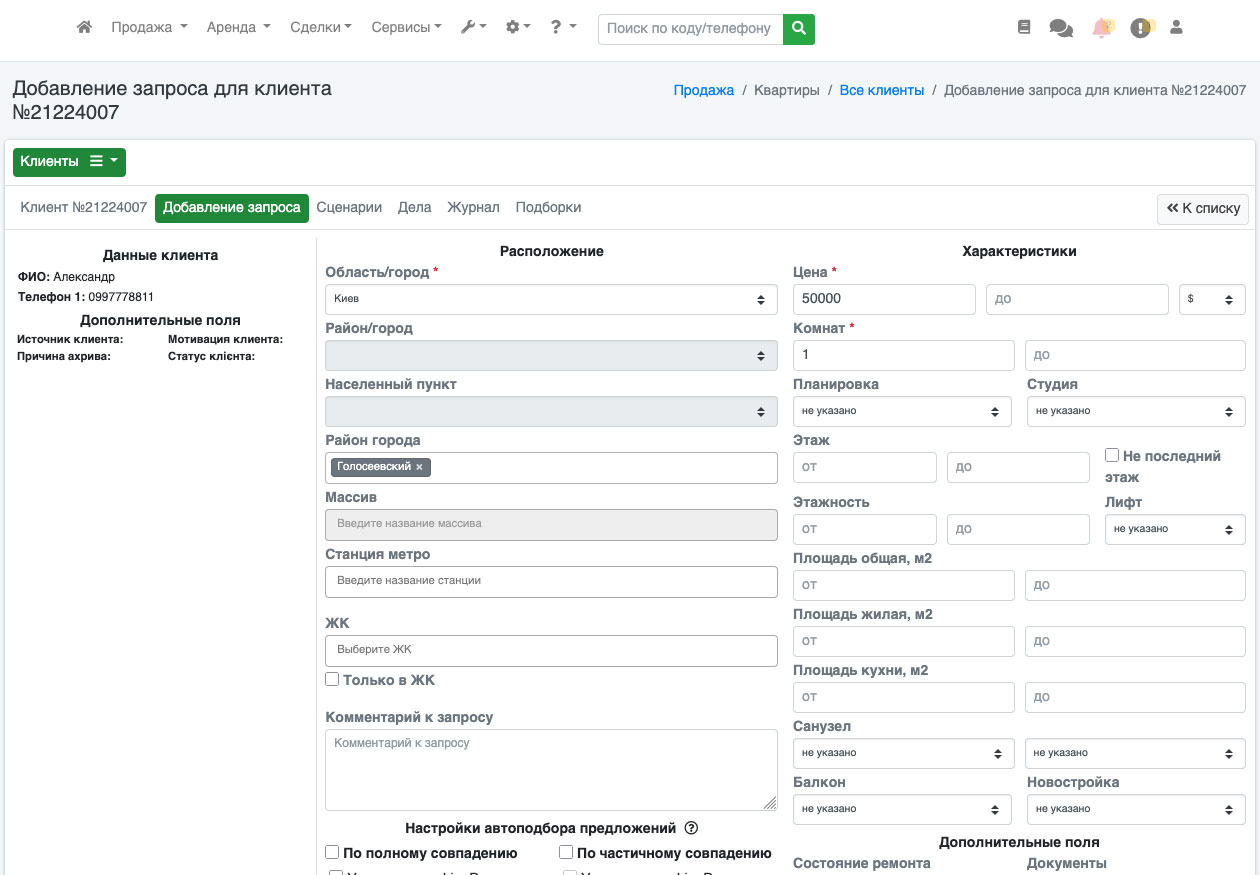 На сторінці (Рис. 416) Вам буде відображена інформація про клієнта і кілька блоків для формування запиту.