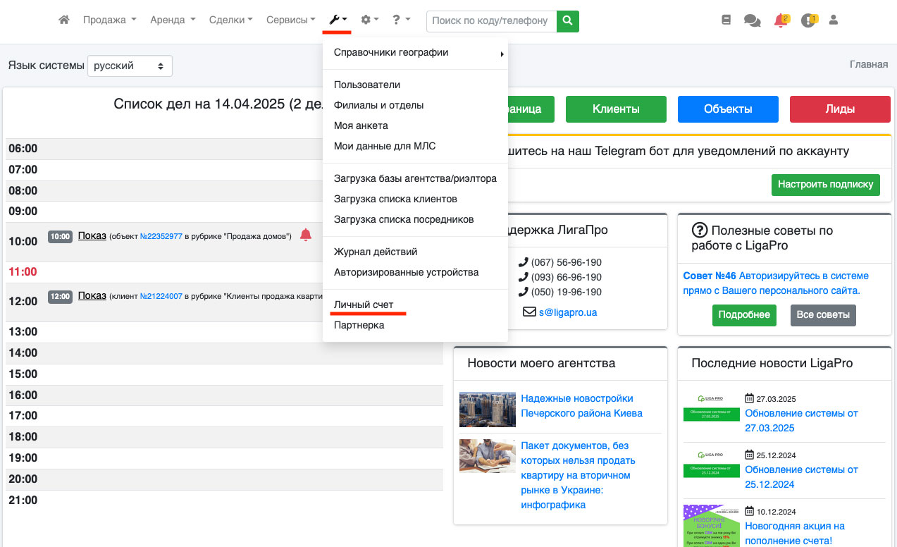 В системе ЛигаПро Вы всегда можете проконтролировать начисление/списание Ваших средств. Для этого зайдите в пункт меню «Управление - Личный счет» (Рис. 439).