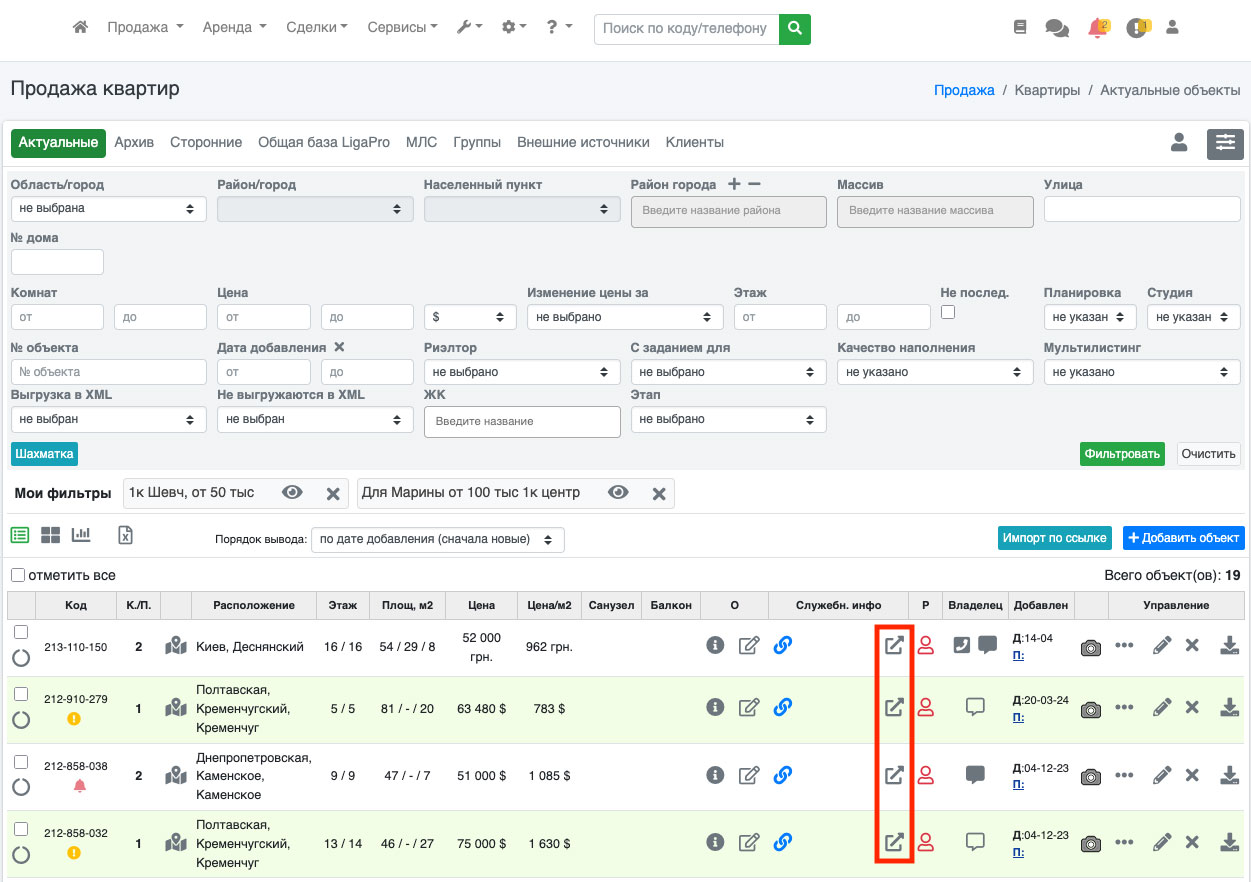 При загрузке объектов в базу система автоматически проверяет контактные телефоны в объявлении по базе посредников ЛигаПро и, если этот номер в базе существует, то объект попадает в список «возможно посредник».