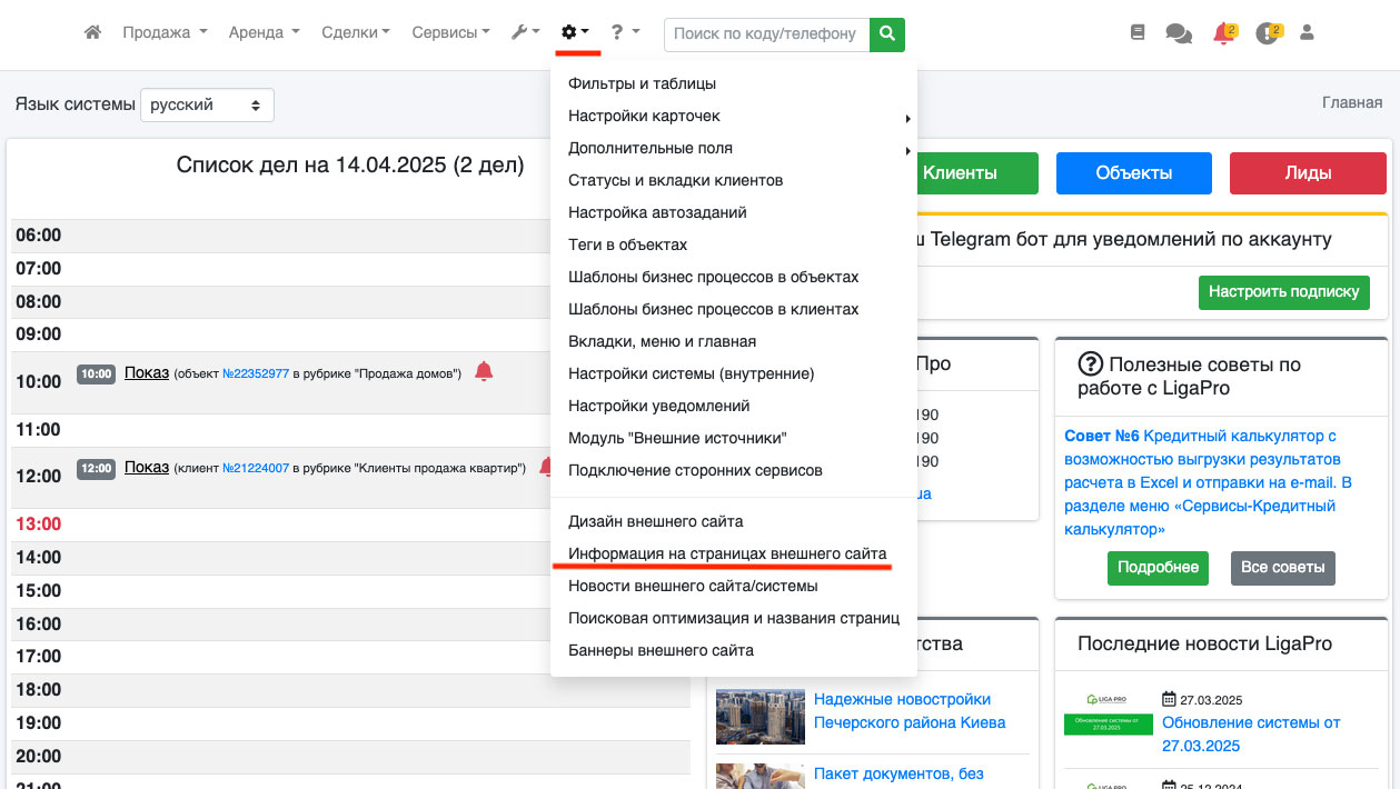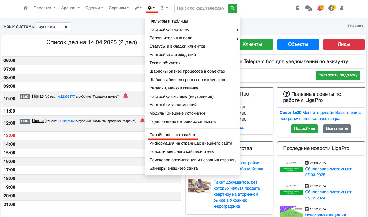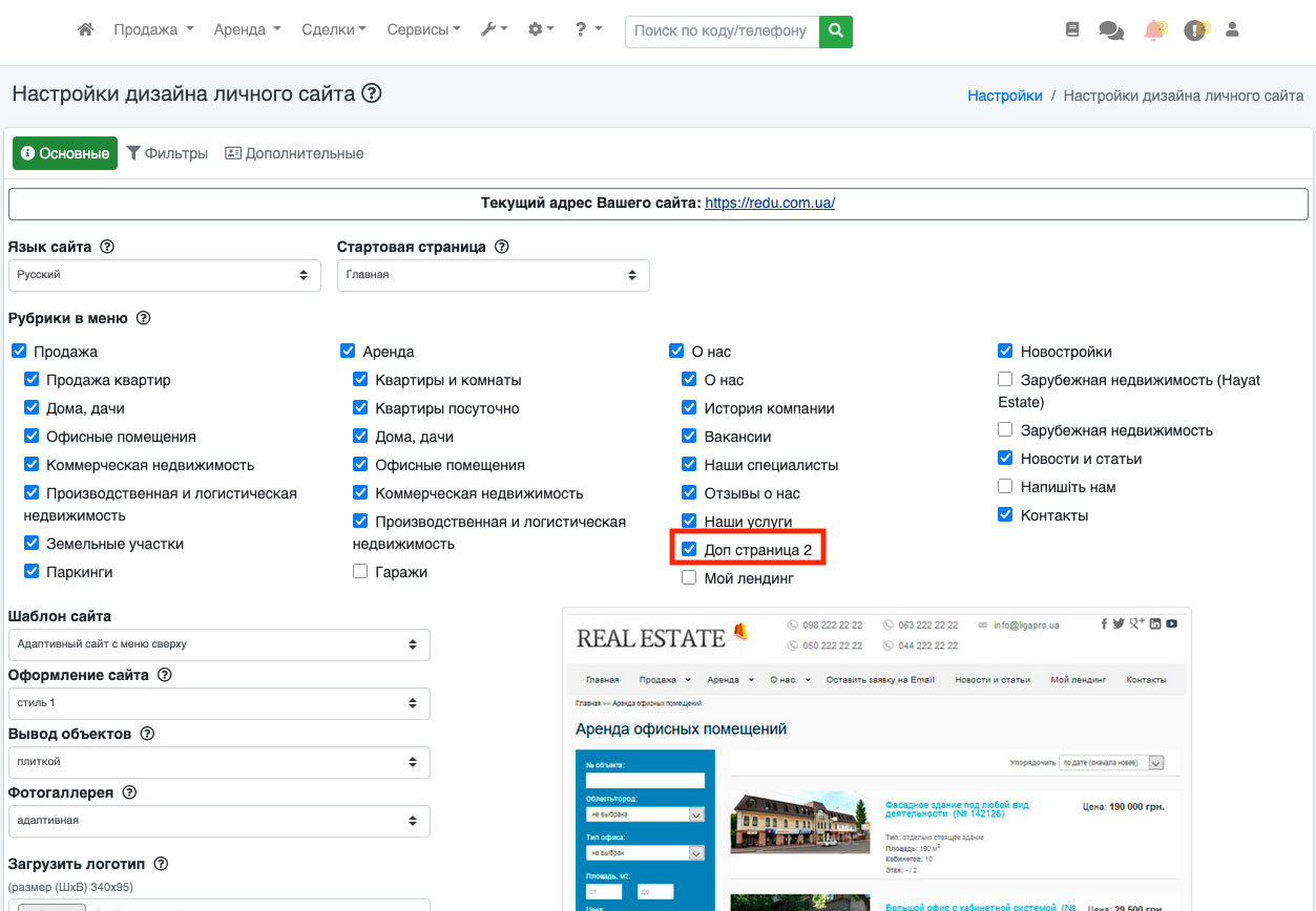 В системе ЛигаПро, помимо основных страниц персонального сайта существует возможность создавать дополнительные страницы. Чтобы включить дополнительные страницы на персональном сайте - зайдите в пункт «Настройки - Настройки дизайна внешнего сайта» (Рис. 510).
