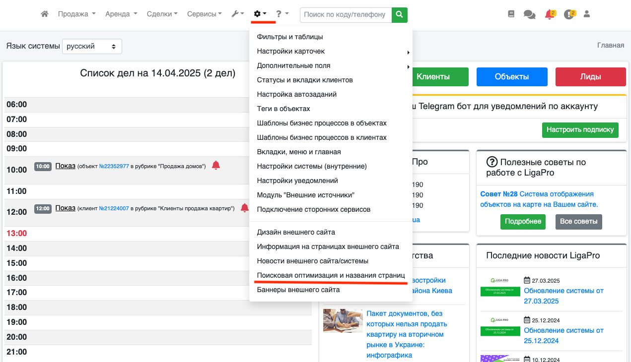 После этого перейдите в пункт “Настройки - Поисковая оптимизация и название страниц” (Рис. 512).
