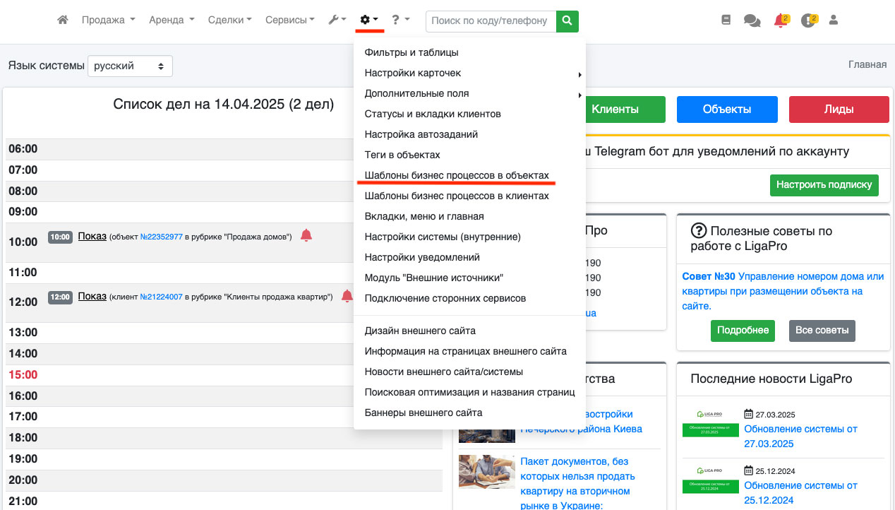 Щоб створити бізнес процес - зайдіть в пункт «Налаштування - Шаблони бізнес процесів в об'єктах» (Рис. 648).