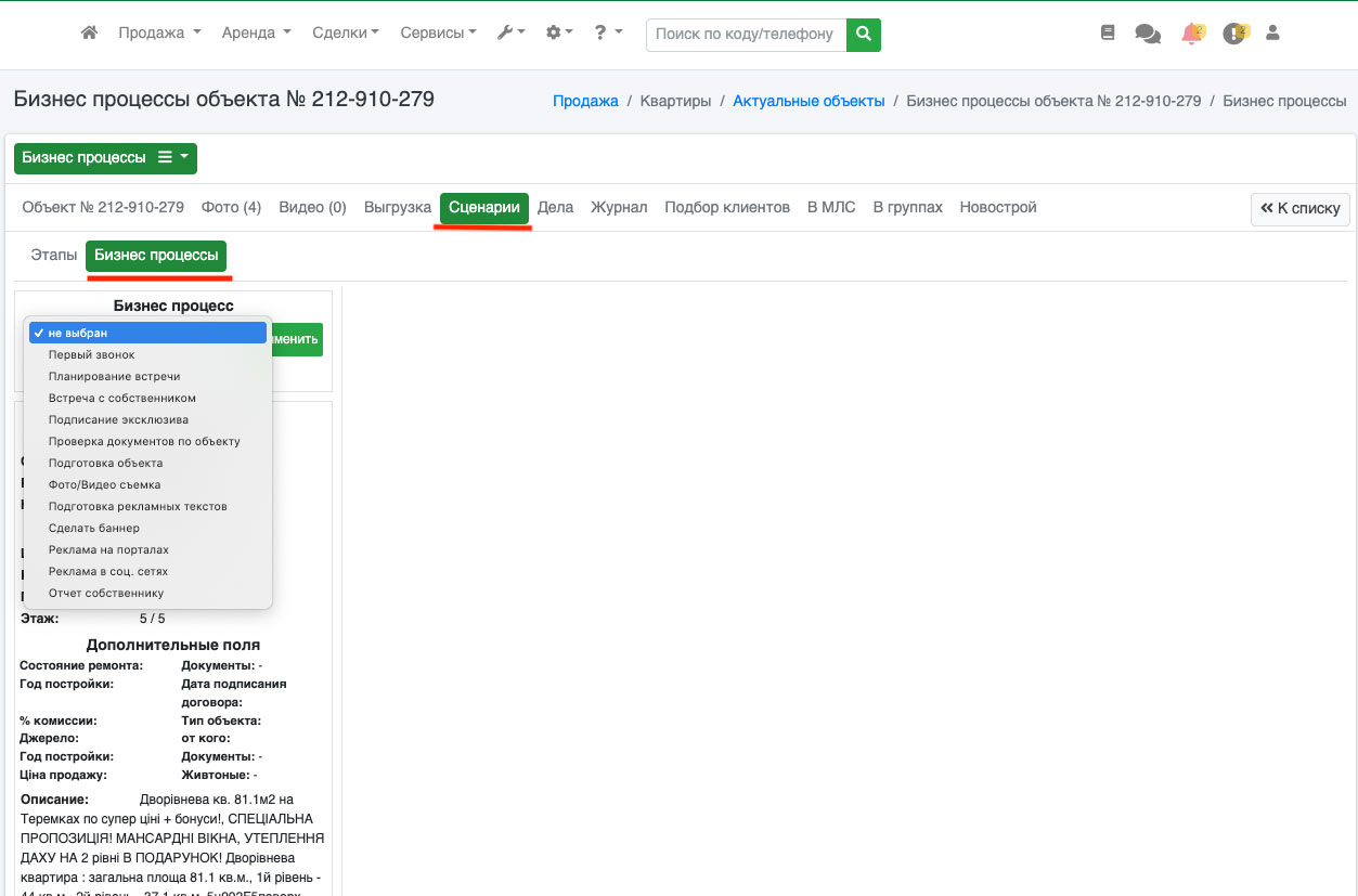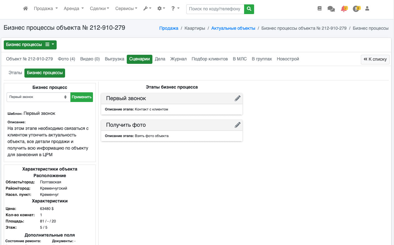 Тепер Ви можете редагувати етапи бізнес процесу, додавати файли до кожного етапу, змінювати статус, і переглядати який у етапу статус: завершено, в роботі. Таким чином використовую бізнес процеси в об'єктах Ви можете повністю упорядкувати дії який своїх співробітників по об'єкту, адже все що працівник повинен - це просто виконувати всі ті етапи які вказані в бізнес процесі.