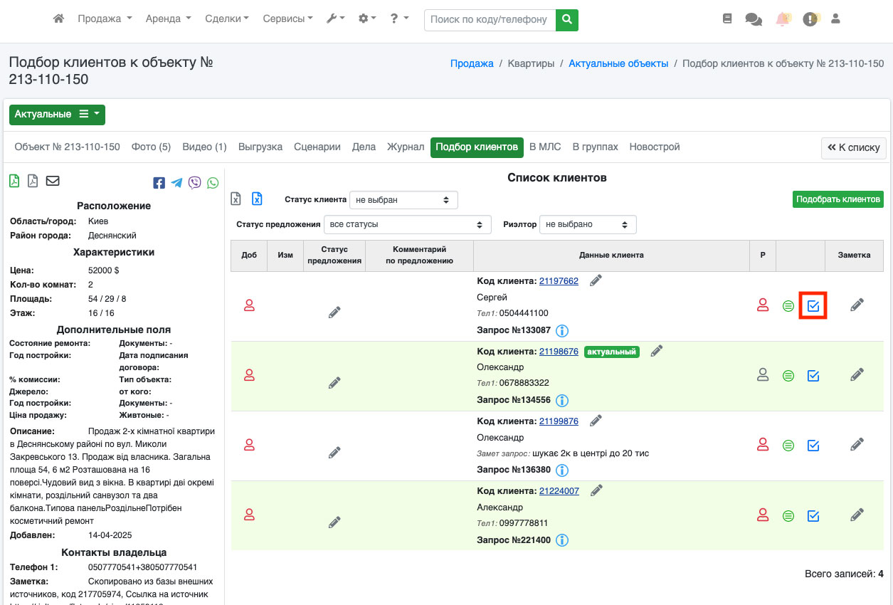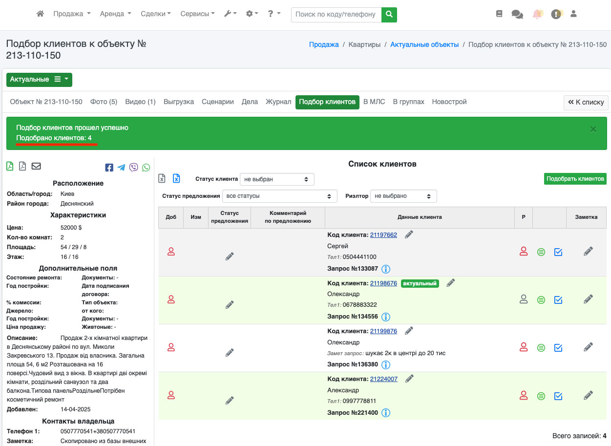 Данная функция будет полезна тем агентствам, которые работают от эксклюзивов, чтобы, добавляя объект в базу сразу видеть какие клиенты ему подходят.