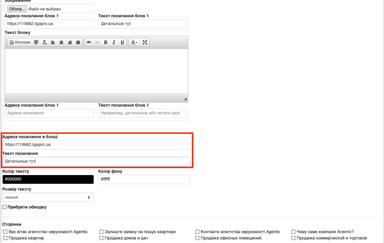 Тепер розглянемо докладніше сторінку додавання блоку (банера).